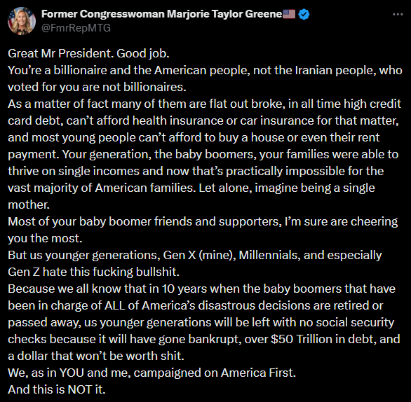 But us younger generations, Gen X (mine), Millennials, and especially Gen Z hate this fucking bullshit.