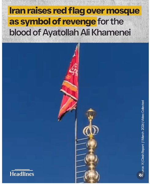 In immediate response to President Trump murdering innocent children so he could assassinate the Iranian leader, this report details, Iranian Ayatollah Naser Makarem Shirazi declared a jihad holy war against the United States and Israel—the Red Flag of Revenge total war emblem was quickly raised over the holiest Shiite mosque in Iran—then the Iranian Islamic Revolutionary Guard Corps announced: “In a few moments, the most brutal offensive operation in the history of the armed forces of the Islamic Republic of Iran against Israel and American terrorist bases will begin”.